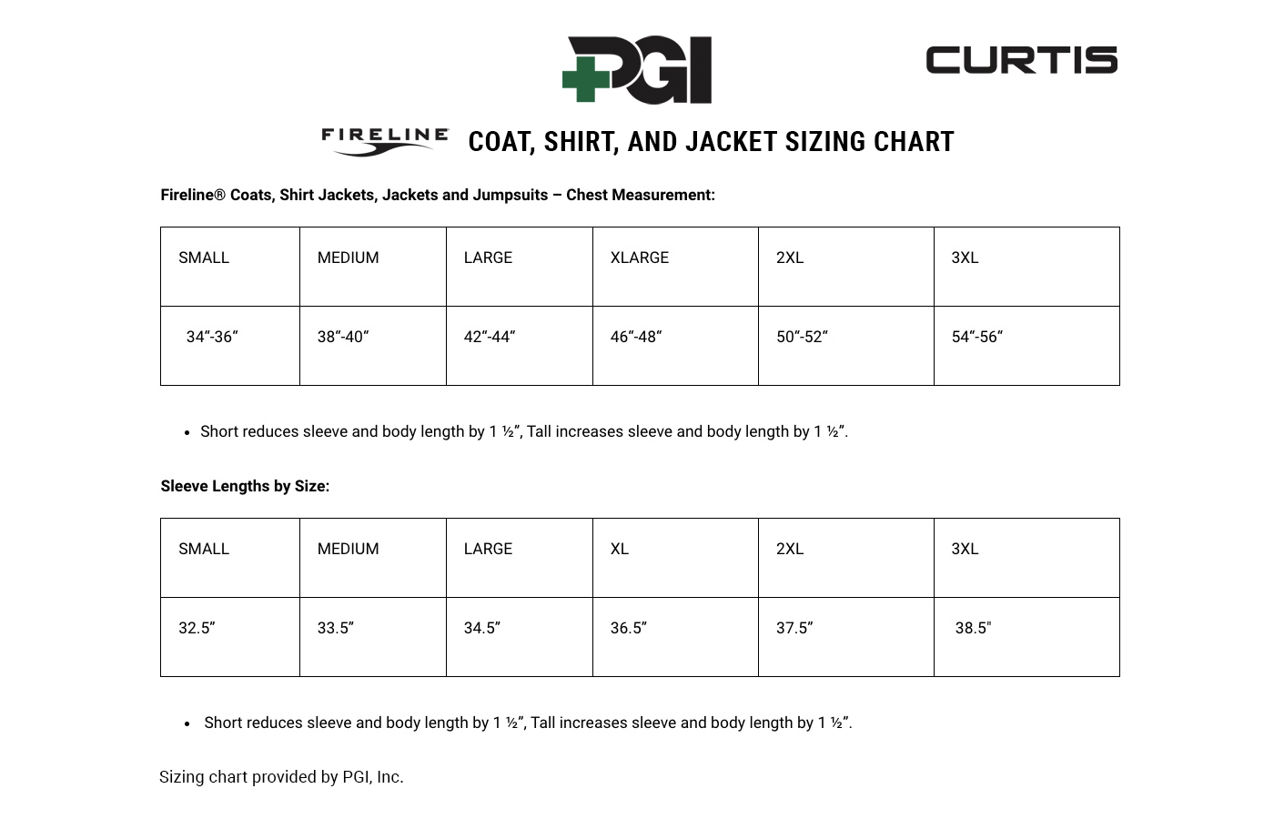 - Short: 1.5 in. shorter sleeve and body length.